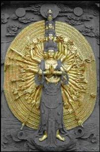 Kuan Yin from Mt. Jiuhua in Anhui province. Many arms represent the bodhisattva's limitless capacity and commitment to helping other beings.
